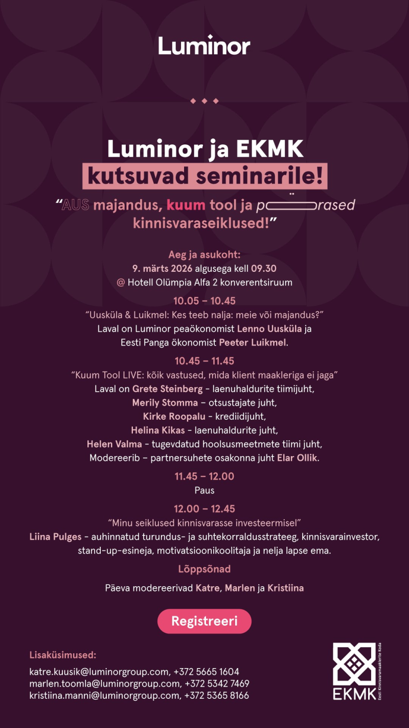 9.märts 2026 kell 09.30 Hotell Olümpia Alfa 2 konverentsiruum