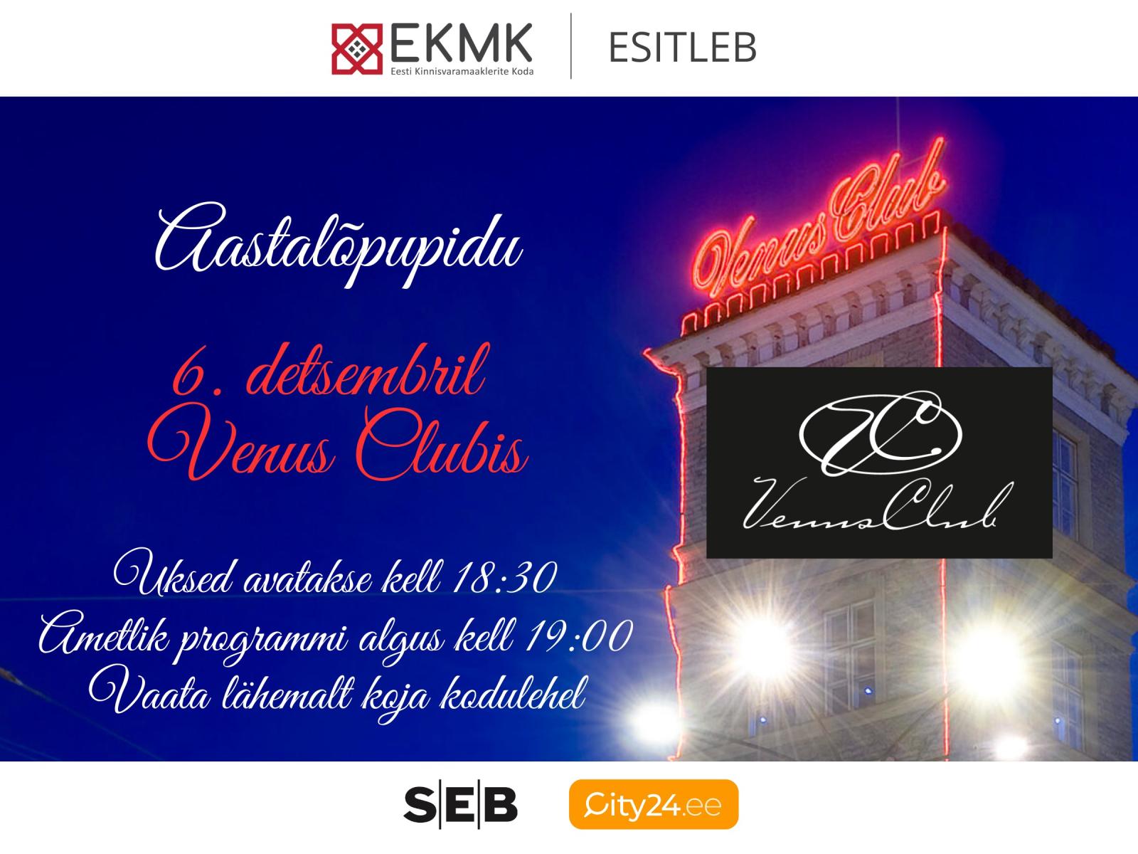 Käesoleva aasta Aastalõpupidu toimub 6.detsembril ööklubis VENUS CLUB (Vana-Viru 14, Tallinn). Pidu algab kell 19.00, uksed avatud ja kogunemine alates kell 18:30.