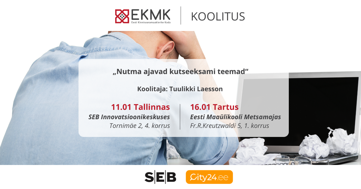 TALLINNA KOOLITUS ON VÄLJA MÜÜDUD! Ootelisti lisamiseks saada kiri: maakleritekoda@maakleritekoda.ee
