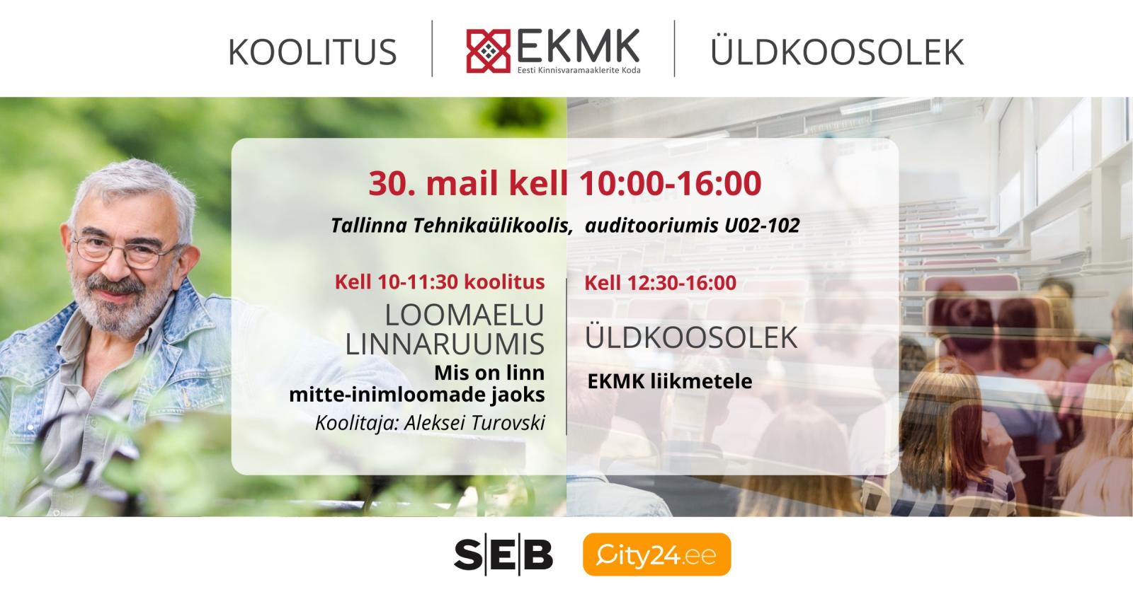 EKMK Koolitus "Loomaelu linnaruumis - mis on linn mitte-inimloomade jaoks" ja üldkoosolek 30.05.2024