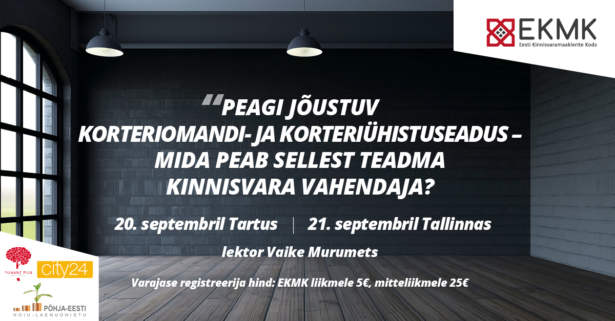 Koolitus "Peagi jõustuv korteriomandi- ja korteriühistuseadus – mida peab sellest teadma kinnisvara vahendaja?"